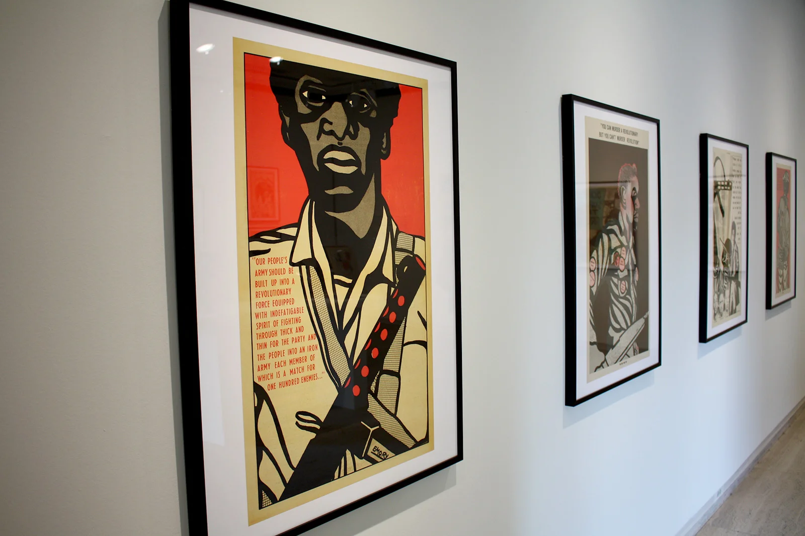 Photo by James Wooldridge. Opposite wall: Contemporary portraits of former Black Panther Party members by Suzun Lucia Lmaina