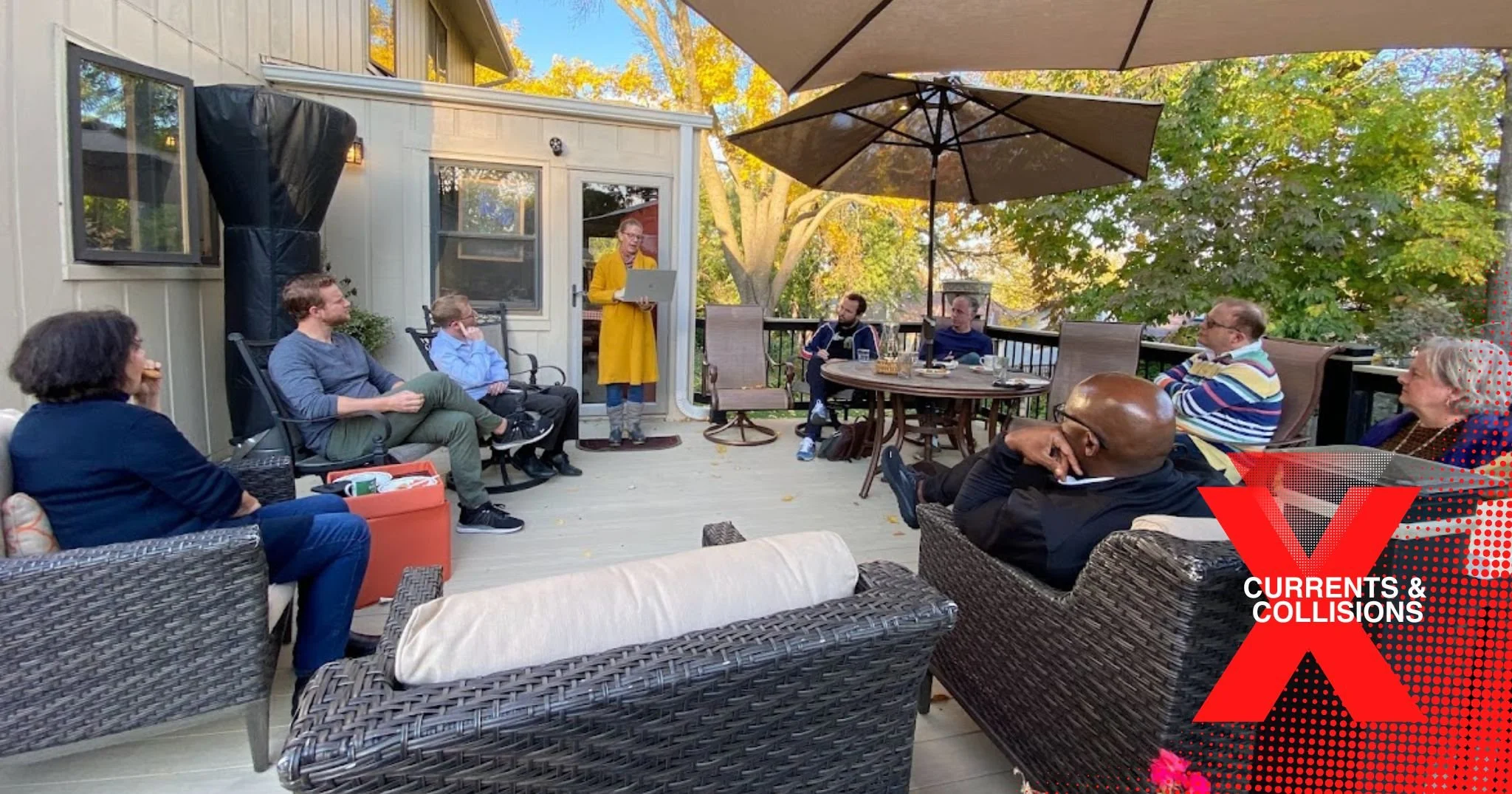 The 2022 TEDx Omaha Speakers: Justin Romano, David Michael Galant, Ralph Kellogg, Dana Murray, Ruth Murray, Lee Running, Michael Ackerbauer, and Dr. Pat Friman.