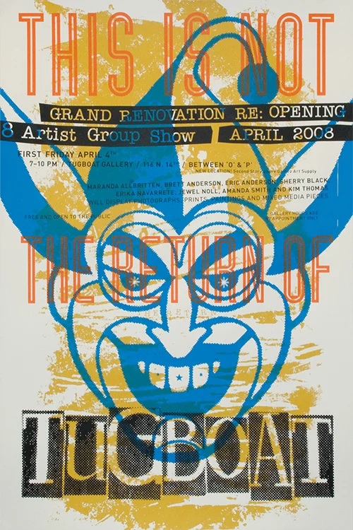 One poster a month for three years (37 exhibition posters). Loud prints for an underground culture, the voice of a non-commissioned art gallery in a flourishing downtown art scene.