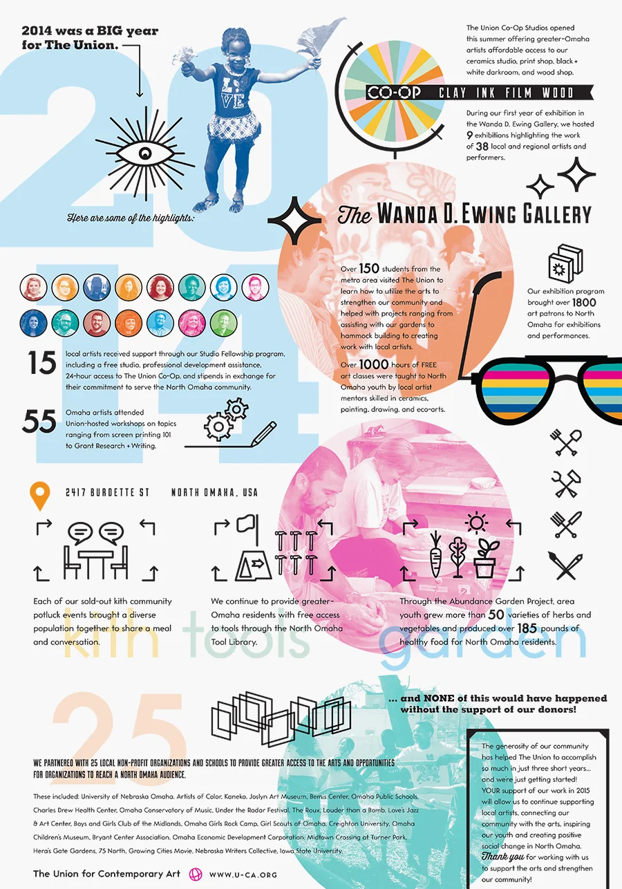 2017 connected more than 9,000 people to the arts at The Union. It was a big year both for the organization and for north Omaha. The Annual Appeal focused on their impact, the new building, and the people who make it wonderful.
