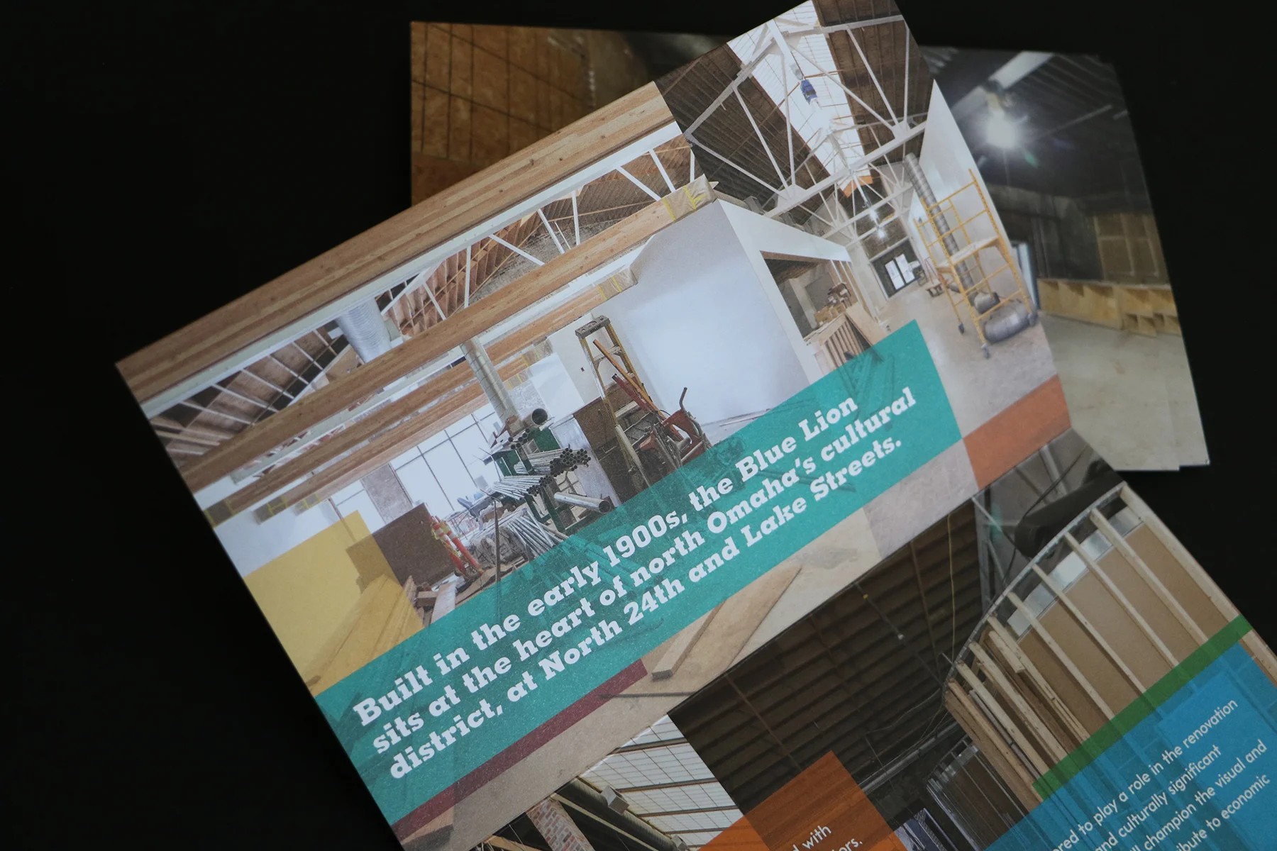 In 2016, in celebration of their 5th anniversary, The Union launched the Blue Lion Growth Campaign as it prepared to move into a newly renovated building in north Omaha. We designed a concise brochure detailing out their plans.