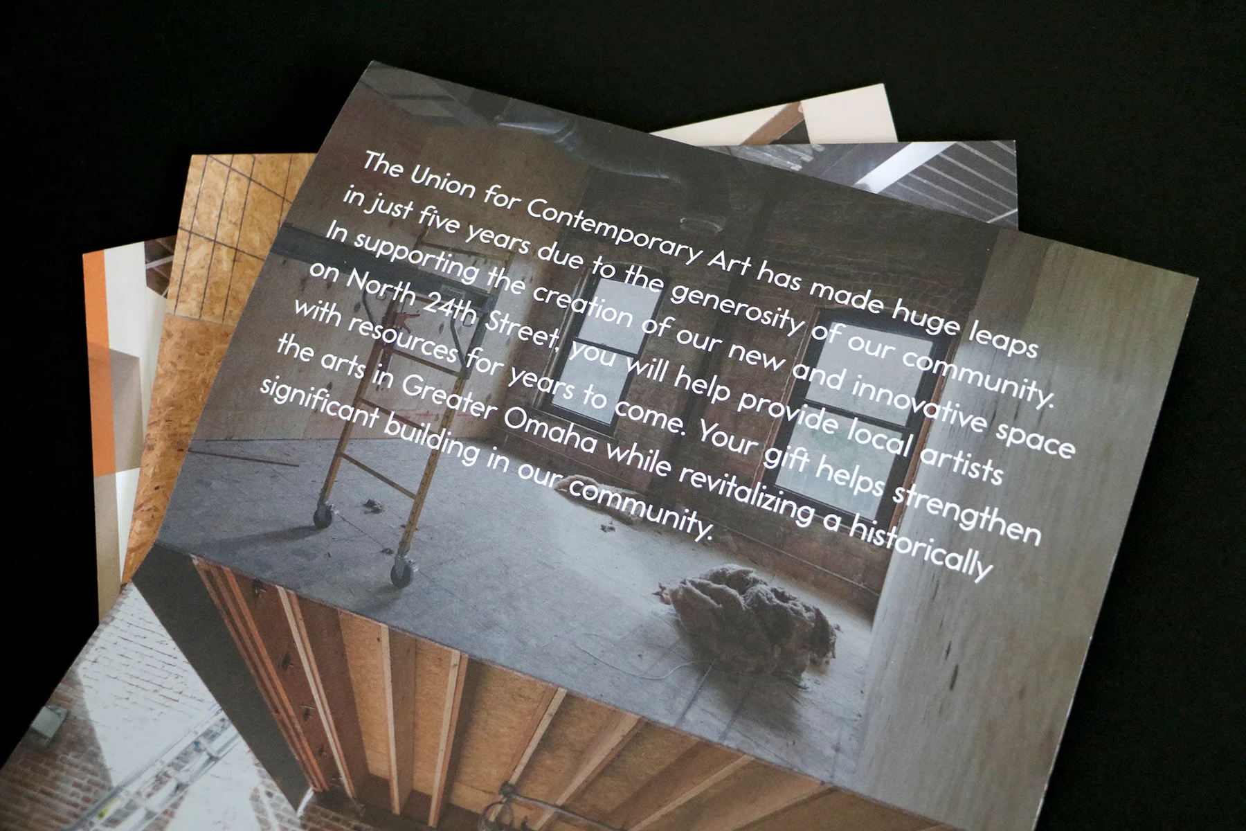 With a strong brand foundation established, design work for The Union for Contemporary Art has been focused on marketing. As this important community nonprofit continues to evolve, we’ve created a few pieces to help communicate all the good work that’s happened at The Union and where it plans to go next.
